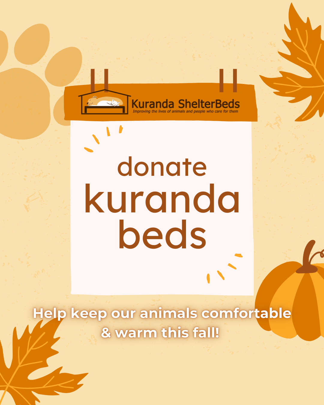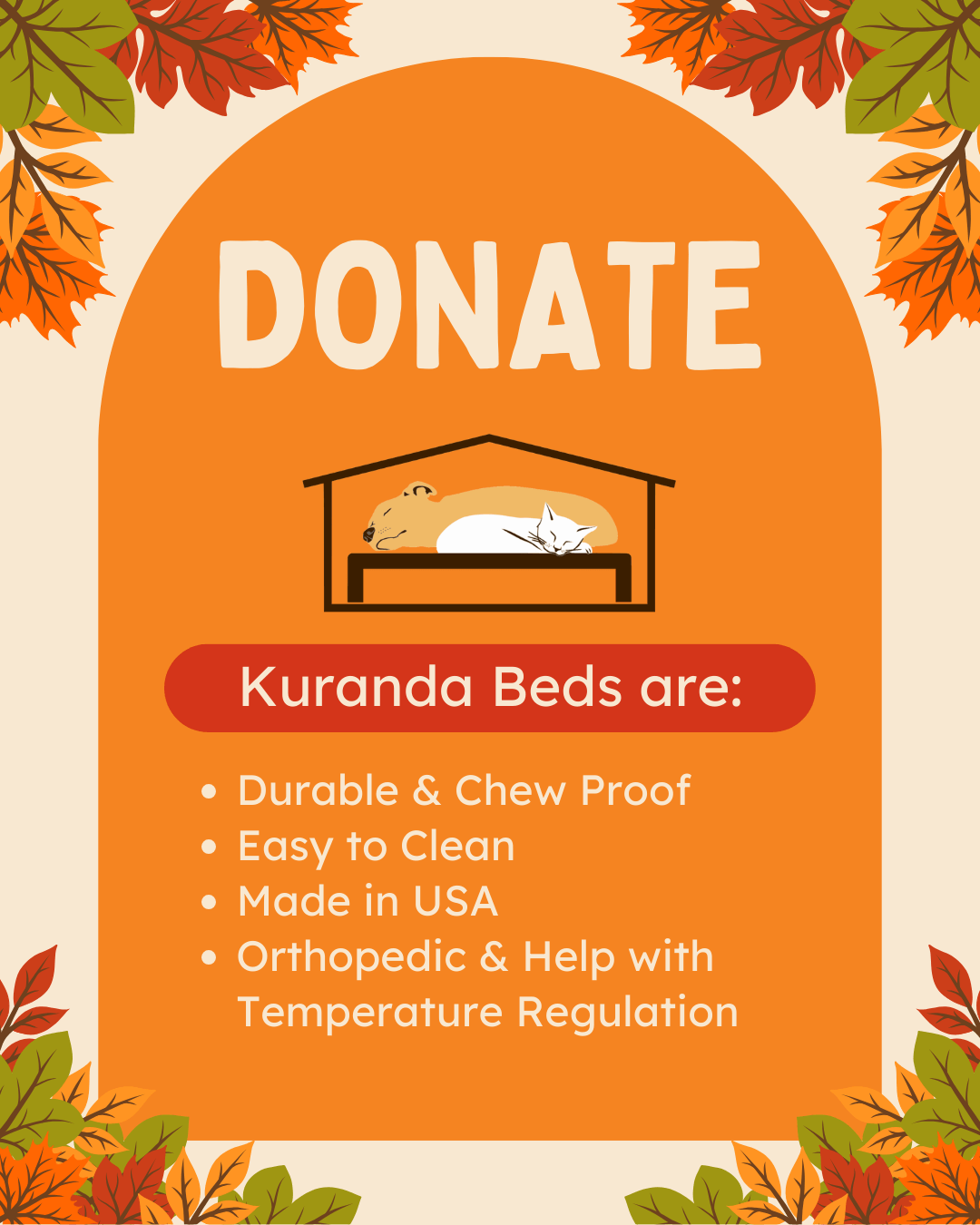 When asking for donations, build awareness and enthusiasm with your followers! People love to know the “story” behind your organization, why you’re needing Kuranda Beds and how they will benefit the animals in your care.